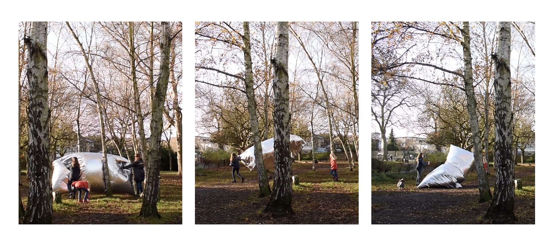 How do residents or dogs respond when they meet a large air-filled artefact in their pathway? Does it become a barrier? Alternatively, does it help guard trees in order to “survive” in a city?